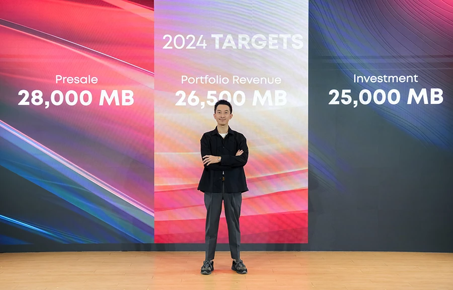 - ตั้งเป้ายอดขายนิวไฮ 28,000 ลบ. แบ่งเป็น แนวราบ 65% แนวสูง 35% และ รายได้รวม 26,500 ลบ. จากธุรกิจหลากหลาย ทั้งธุรกิจอสังหาริมทรัพย์เพื่อขาย แนวราบ-แนวสูง (engine 1) และธุรกิจที่สร้างรายได้ประจำสม่ำเสมอ (engine 2)