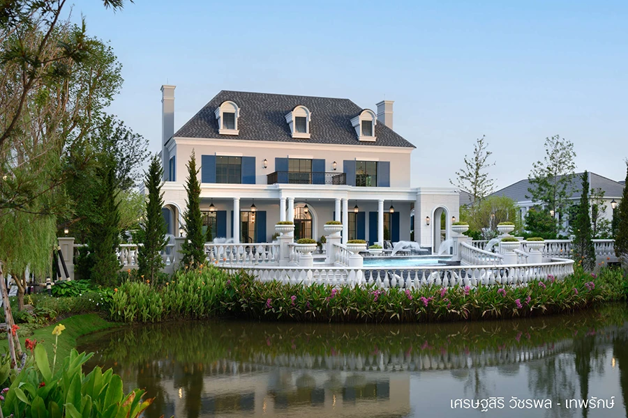 โครงการ เศรษฐสิริ วัชรพล – เทพรักษ์ โดดเด่นเรื่องการออกแบบที่สะท้อนความสำเร็จและภาคภูมิของผู้อยู่อาศัยผ่านคอนเซ็ปต์ Georgian Architecture หนึ่งในรูปแบบงานสถาปัตยกรรมที่งดงามที่สุด เอกลักษณ์อยู่ที่ความโอ่โถง และเส้นสายที่สมมาตร ผสานความคลาสสิก เข้ากับความทันสมัยได้อย่างลงตัว โดดเด่นด้วยฟังก์ชันเพื่อการอยู่อาศัยสมบูรณ์แบบของครอบครัว