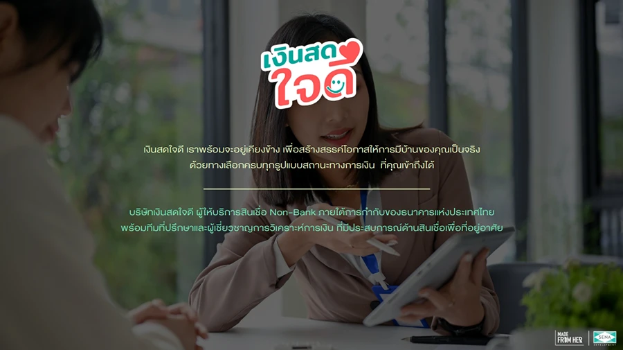 ด้วยเสนา ต้องการส่งมอบโซลูชั่นให้ลูกค้าได้อย่างครบวงจร โดยเฉพาะผู้ที่ประสบปัญหาความพร้อมด้านการเงิน หรือเครติด บวกกับราคาที่พักอาศัยที่เพิ่มขึ้นไม่สัมพันธ์กับรายได้ อีกทั้งอัตราดอกเบี้ยขาขึ้น ทำให้การเป็นเจ้าของบ้านไม่ใช่เรื่องง่ายเลย แม้จะเป็นบ้านที่ราคาไม่สูง เราจึงพัฒนานวัตกรรมทางการเงิน ภายใต้ชื่อ "เงินสดใจดี" เข้ามาเป็นตัวช่วย โดยเปรียบเสมือนผู้ช่วยทางการเงินเพื่อช่วยให้ลูกค้าเข้าถึงสินเชื่อบ้านได้ง่ายขึ้น เพื่อเพิ่มโอกาสการเข้าถึงสินเชื่อที่อยู่อาศัย ซึ่งในปี 2566 ที่ผ่านมาสามารถช่วยให้ลูกค้าที่ถูกปฏิเสธสินเชื่อจากธนาคารสามารถเข้าถึงสินเชื่อได้เป็นยอดรวมถึง 300 ล้านบาท