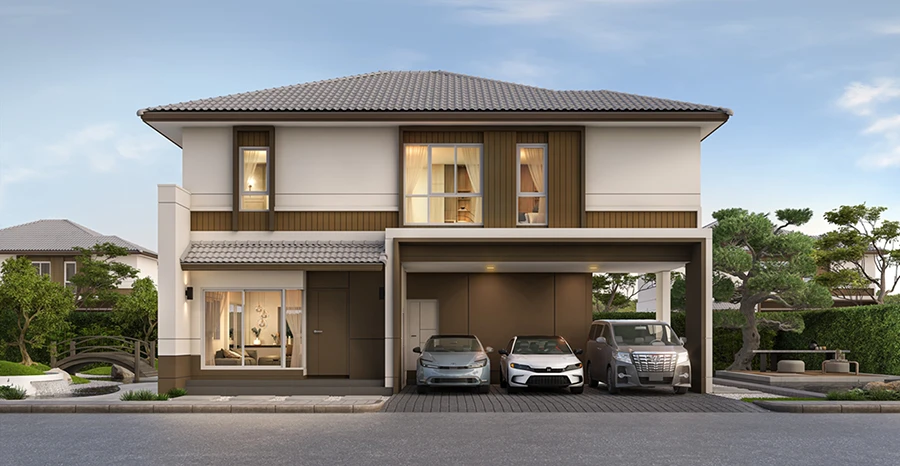 บ้านเดี่ยว Luxury สไตล์ Neo Classic ที่สุดแห่งความหรูหราในการอยู่อาศัย ที่ที่ทุกตารางเมตรถูกออกแบบ อย่างพิถีพิถัน เพื่อมอบสุนทรีย์แห่งการอยู่อาศัยให้กับทุก Generation กับพื้นที่ขนาดใหญ่ ขนาดที่ดินเริ่มต้น 100 ตารางวาขึ้นไป พื้นที่ใช้สอย 430-580 ตารางเมตร ออกแบบอย่างพิถีพิถันเพื่อสร้างความสุขอย่างต่อเนื่องด้วยดีไซน์ Double Volume พร้อมแปลนบ้านยืดหยุ่นที่สามารถปรับใช้ได้ตามไลฟ์สไตล์ของทุกวัยในครอบครัว กับแบบบ้าน 3 ดีไซน์ที่เลือกเองได้