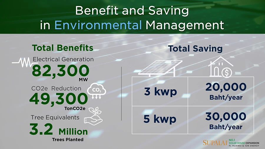 เพื่อก้าวสู่การเป็นผู้นำอสังหาฯ ที่ใส่ใจด้านสิ่งแวดล้อมอย่างแท้จริง บริษัท ศุภาลัย จำกัด (มหาชน) เชิญชวนพันธมิตรธุรกิจด้านเทคโนโลยี ยักษ์ใหญ่ระดับประเทศ บริษัท หัวเว่ย เทคโนโลยี่ (ประเทศไทย) จํากัด และบริษัท ไอออน เอนเนอร์ยี่ คอร์ปอเรชั่น จำกัด ร่วมผนึกความแข็งแกร่ง สร้างความเชื่อมั่นสู่การเป็น No.1 "บ้านติดโซลาร์" โดยเฟสแรกได้ดำเนินแผนการติดตั้งโซลาร์เซลล์ให้ลูกบ้านศุภาลัย ประเดิม 1,500 หลังทั่วประเทศ พร้อมดูแลระบบติดตั้ง บำรุงรักษา รวมถึงความรู้ความเข้าใจด้านการใช้งาน และร่วมกันผลักดันการใช้พลังงานสะอาดในครัวเรือน ซึ่งนอกจากจะช่วยประหยัดค่าไฟฟ้าให้กับลูกค้า ยังเป็นวิธีที่ช่วยไม่ก่อให้เกิดการปล่อยก๊าซเรือนกระจก ช่วยลดภาระให้แก่โลกโดยทุกคนสามารถทำได้และเข้าถึงได้ง่ายๆ