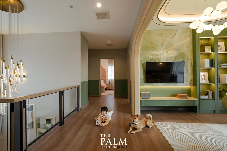 เดอะ ปาล์ม บางนา – วงแหวน 2 ตั้งอยู่บนพื้นที่ 36 ไร่ ออกแบบสไตล์ Modern Tropical มีแบบบ้านให้เลือก 3 แบบ ตั้งแต่ 83-180 ตร.ว. พื้นที่ใช้สอย 330-466 ตร.ม แต่ละหลังจัดออกมาเป็น 4 ห้องนอน มีห้องนอนที่ชั้นล่างทุกแบบบ้าน มี 5 ห้องน้ำ 3 ห้องครัว จอดรถได้ 3-4 คัน กับสังคมส่วนตัวเพียง 84 ครอบครัว มาพร้อมความปลอดภัยเหนือระดับถึง 5 ขั้น ภายในบ้านยังมี ระบบ Home Automation "My Haus" ควบคุมระบบไฟฟ้า และ Smart Home Devices เพียบพร้อมด้วยสาธารณูปโภคที่ดี เช่น สโมสรพร้อมแกรนด์เลานจ์ Co-Working space ฟิตเนสวิวพาโนรามา สระว่ายน้ำที่มีโซนสำหรับเด็กและจากุซซี่ ฯลฯ