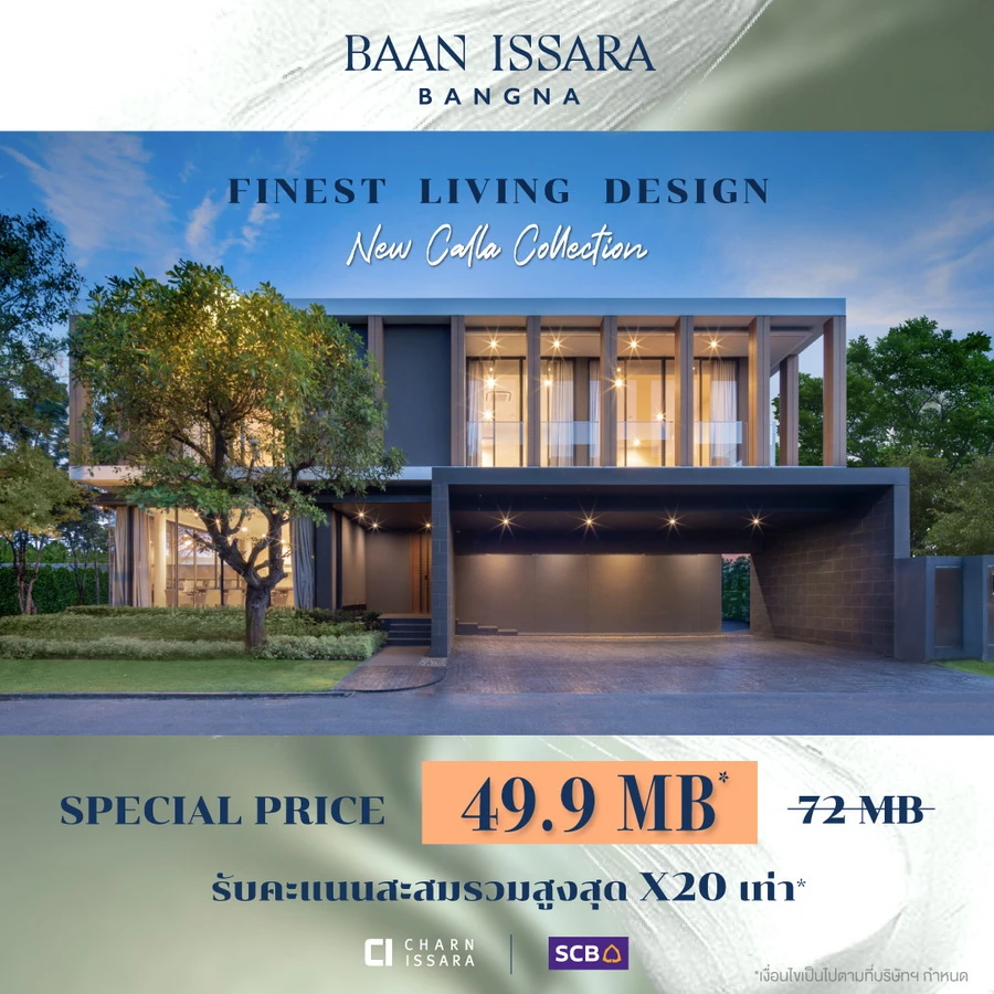 ด้านโครงการ บ้านอิสสระ บางนา (Baan Issara Bangna) จัดโปรโมชั่น Finest Living Design-New Calla Collection ราคาพิเศษสำหรับบ้าน Type C (Calla) ด้วยราคาพิเศษเริ่ม 49.9 ล้านบาท รับคะแนนสะสมเพิ่ม X20 เมื่อมีการใช้จ่ายการจองผ่านบัตรเครดิต SCB Private Bank และ First และรับส่วนลดเพิ่มสูงสุด 500,000 บาท เมื่อลงทะเบียนออนไลน์