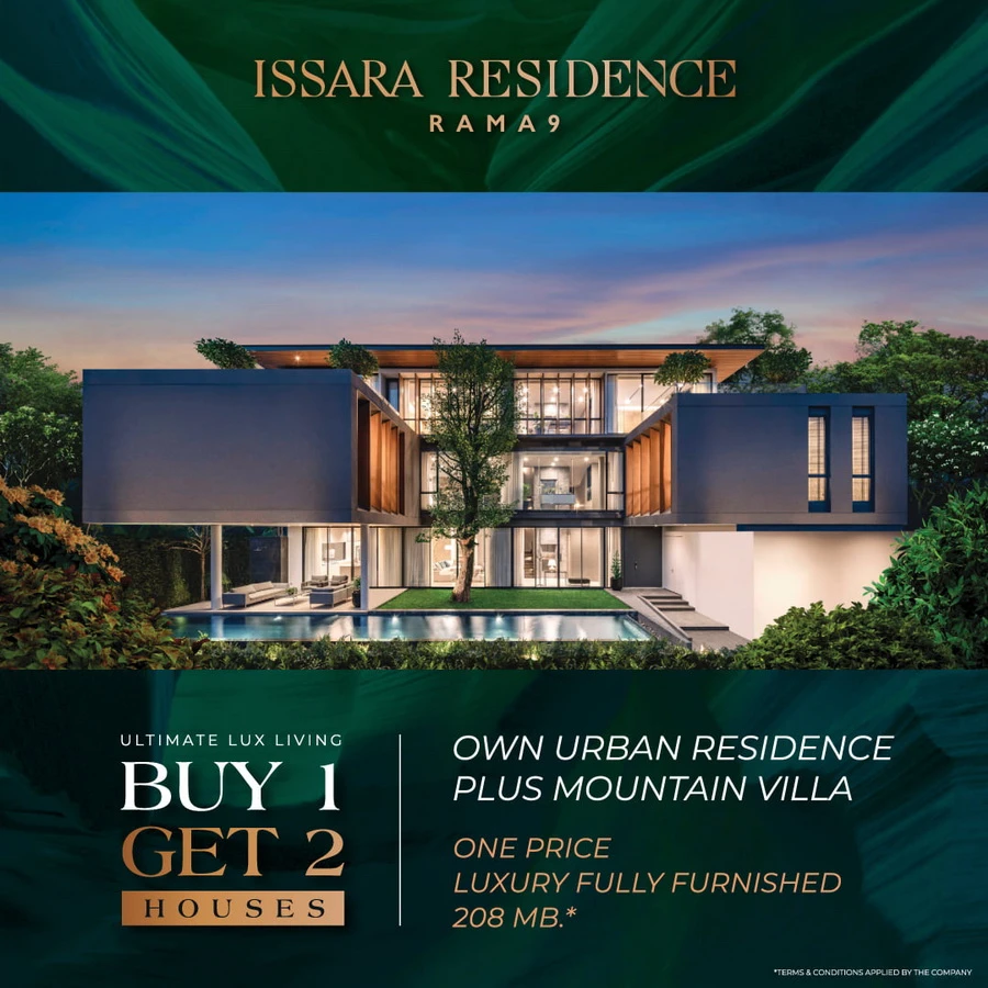 โดยโครงการ อิสสระ เรสซิเดนซ์ พระราม 9 (Issara Residence Rama 9) จัดโปรโมชั่น Ultimate Lux Living Buy 1 Get 2 Houses เมื่อซื้อโครงการอิสสระ เรสซิเดนซ์ พระราม 9 พร้อมตกแต่ง รับฟรีทันทีวิลล่าตากอากาศสุดหรูจาก โครงการบ้านสีตวัน ปากช่อง-เขาใหญ่ มูลค่า 29.9 ล้านบาท ฟรีทุกค่าใช้จ่ายวันโอนทั้ง 2 โครงการ พร้อมรับส่วนลดเพิ่มสูงสุด 500,000 บาท เมื่อลงทะเบียนออนไลน์ ให้คุณสัมผัสประสบการณ์สุด Exclusive ที่เชื่อมต่อชีวิต 2 ทำเลด้วยไลฟ์สไตล์ที่เหนือระดับ ตอบโจทย์ทุกจังหวะชีวิตลงตัวอย่างสมบูรณ์แบบ
