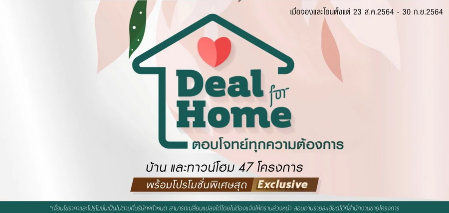 Deal For Home ตอบโจทย์ทุกความต้องการ บ้านและทาวน์โฮม 47 โครงการ พร้อมโปรโมชั่นพิเศษสุด Exclusive เมื่อจองและโอนตั้งแต่ 23 สิงหาคม - 30 กันยายน 2564
