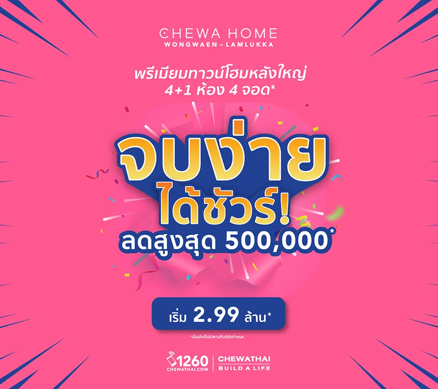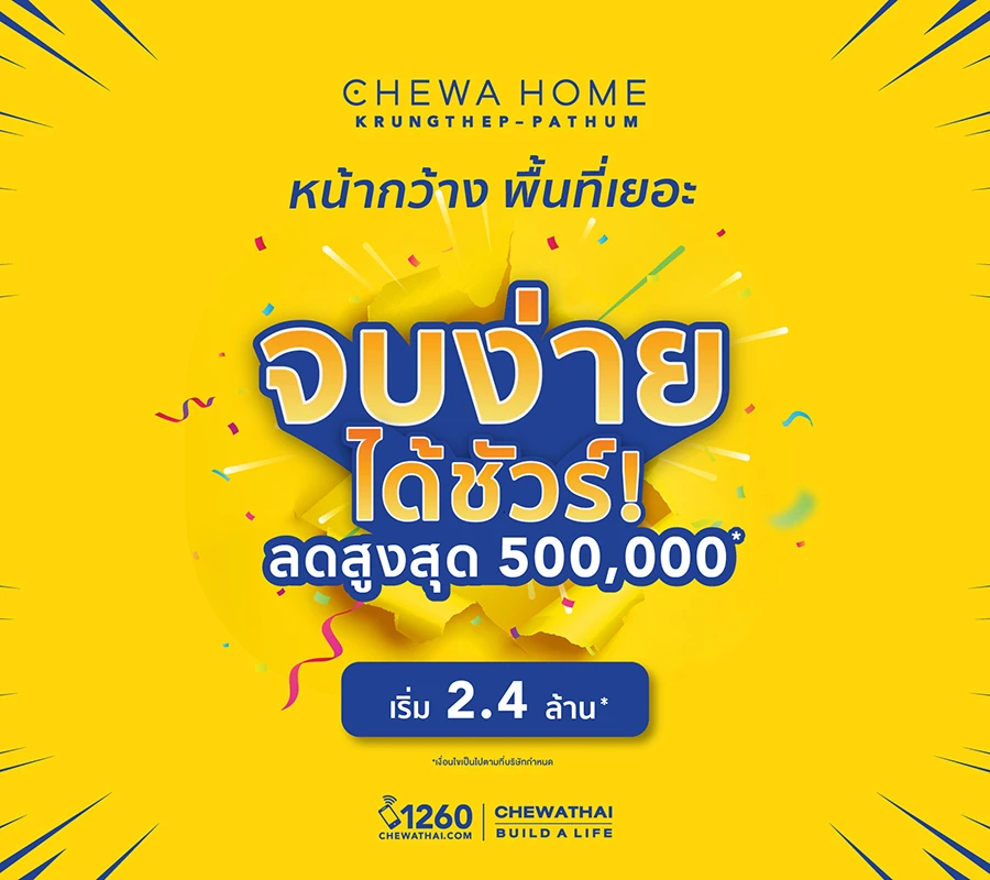ชีวาโฮม กรุงเทพ - ปทุม หน้ากว้าง พื้นที่เยอะ จบง่าย ได้ชัวร์ ลดสูงสุด 500,000 บาท* เริ่ม 2.4 ล้านบาท