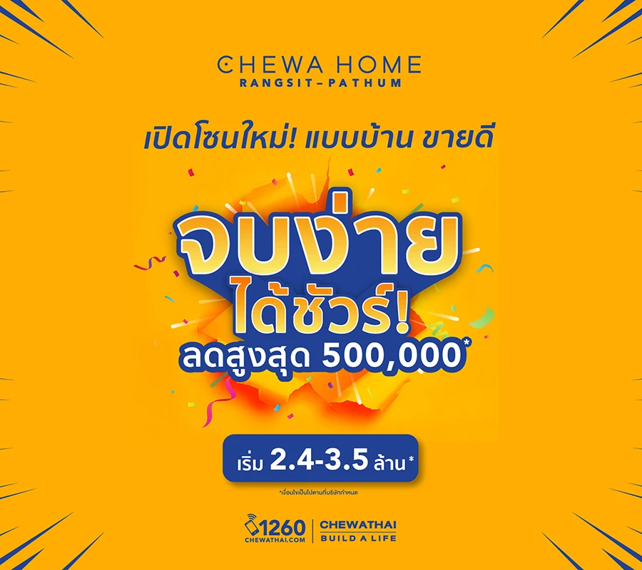 ชีวาโฮม รังสิต - ปทุม เปิดโซนใหม่ แบบบ้าน ขายดี จบง่าย ได้ชัวร์ ลดสูงสุด 500,000 บาท* เริ่ม 2.4 - 3.5 ล้านบาท*
