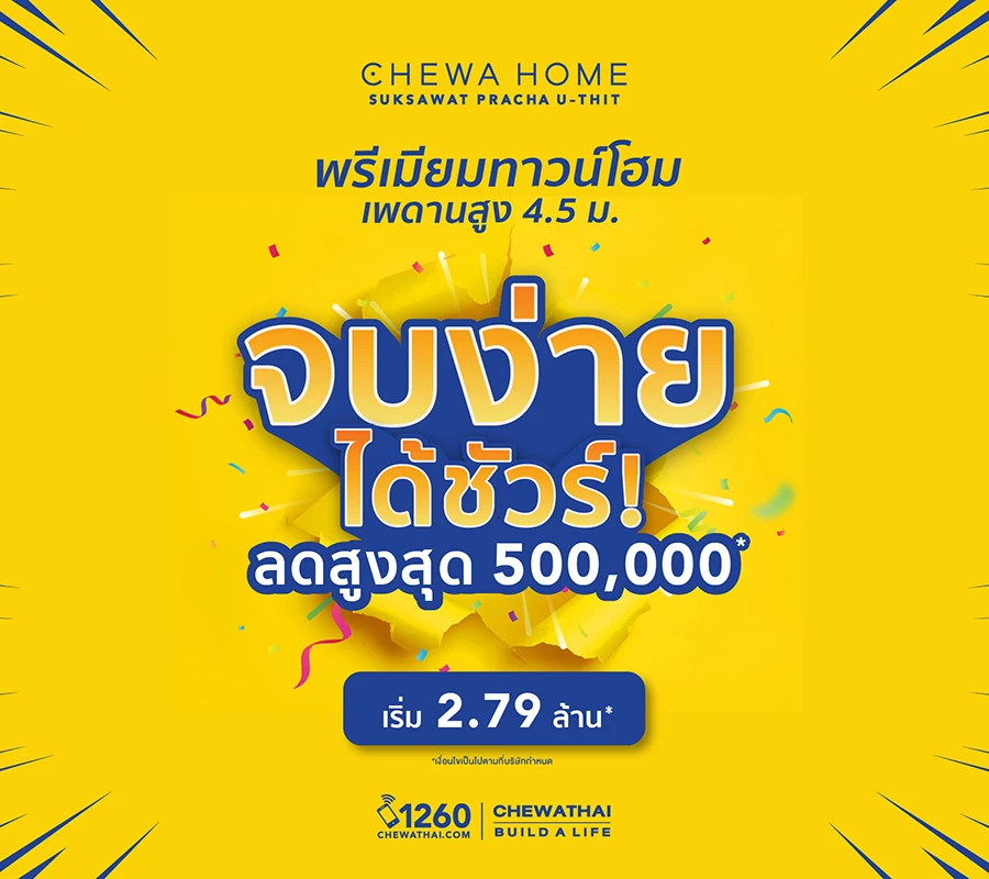 ชีวาโฮม สุขสวัสดิ์ - ประชาอุทิศ พรีเมียมทาวน์โฮม เพดานสูง 4.5 เมตร จบง่าย ได้ชัวร์ ลดสูงสุด 500,000 บาท* เริ่ม 2.79 ล้านบาท*