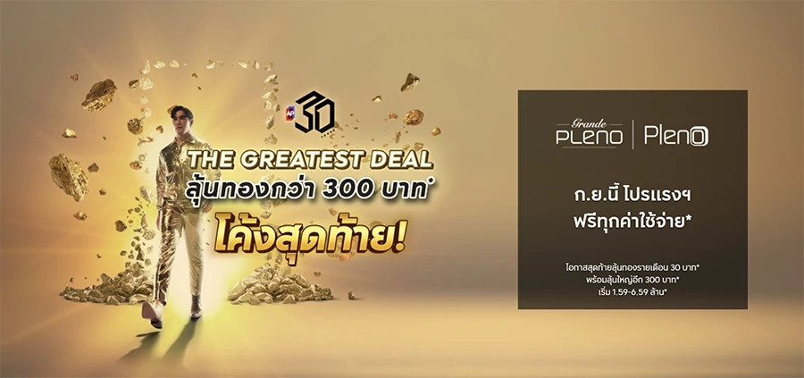 PLENO บ้านหลังแรกที่ดีที่สุด คุ้มค่า น่าซื้อ โอกาสสุดท้าย กันยายน นี้ ลุ้นทองรายเดือน 30 บาท* พร้อมลุ้นทองรวมกว่า 300 บาท* จองวันนี้ฟรีทุกอย่าง ดูแลให้ครบจนจบโอนฯ พร้อมข้อเสนออีกมากมาย