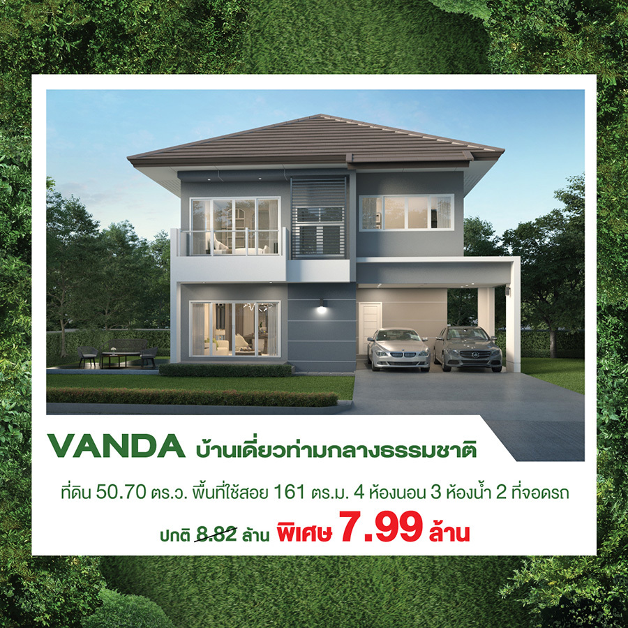 THE ONE life bangna มีบ้าน 2 แบบ 2 สไตล์เลือกได้ตามใจคุณ แบบบ้าน Vanda พื้นที่ใช้สอย 161 ตร.ม. บนที่ดิน 51.10 ตร.ว. ขนาด 4 ห้องนอน 3 ห้องน้ำ 1 ห้องครัว 2 ที่จอดรถ ราคาพิเศษเพียง 7.99 ล้านบาท (จากราคาปกติ 8.86 ล้านบาท)
