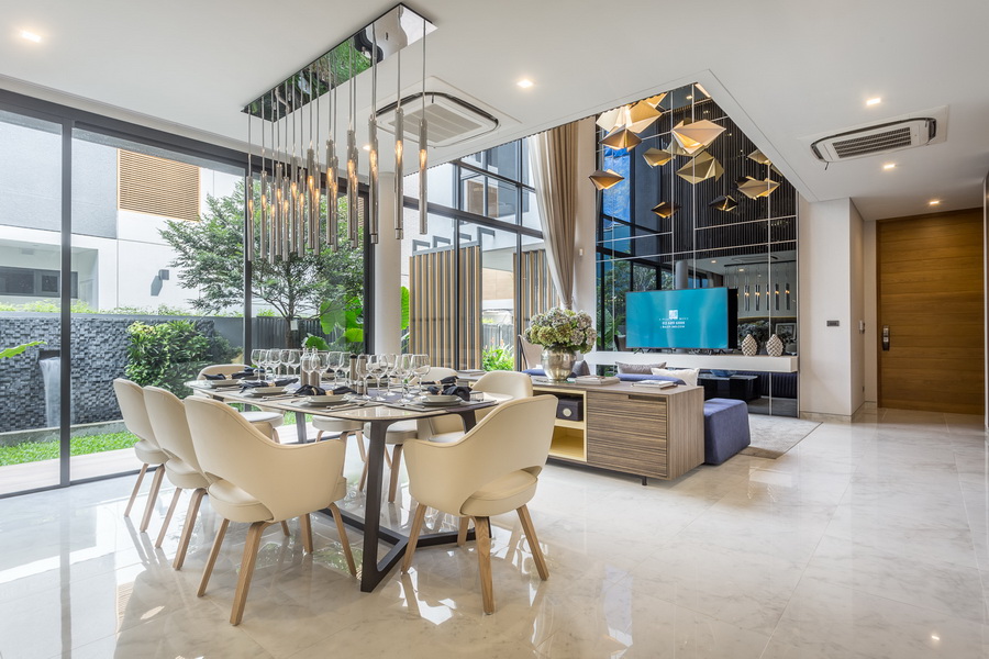 สำหรับบ้านเดี่ยว จะมีรูปแบบ 3 ชั้น แบ่งเป็น 3 สไตล์ ได้แก่ The Garden Villa พื้นที่ใช้สอย 340 ตารางเมตร ให้ความสำคัญกับพื้นที่สีเขียวในบริเวณบ้าน The Pool Villa พื้นที่ใช้สอย 490 ตารางเมตร เหมาะกับผู้ที่ต้องการสระว่ายน้ำส่วนตัว และ The Pavilion Villa พื้นที่ใช้สอยมากกว่า 520 ตารางเมตร เป็นแปลงที่ดินพิเศษ มีพื้นที่ขนาดใหญ่ และสระว่ายน้ำส่วนตัว โดยบ้านเดี่ยวทุกหลังมีลิฟท์อำนวยความสะดวกให้ผู้อยู่อาศัย