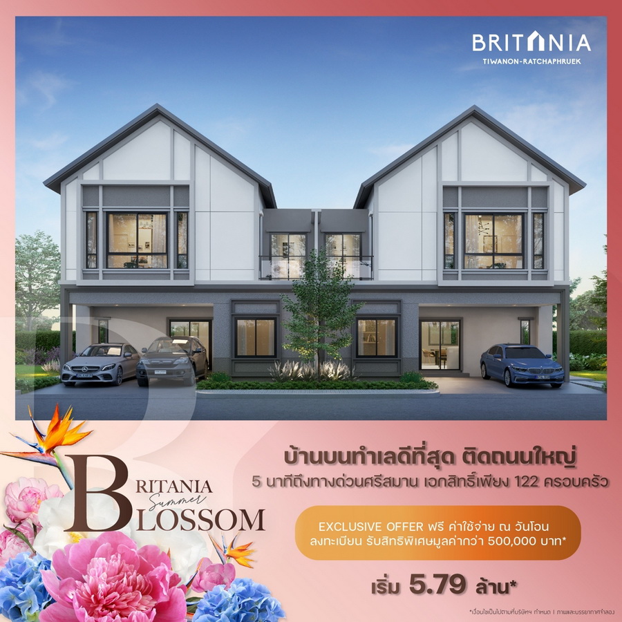 บมจ.บริทาเนีย หรือ BRI เปิดตัวแคมเปญใหญ่รับไตรมาส 2 “BRITANIA SUMMER BLOSSOM” ความสุข บานสะพรั่ง รับซัมเมอร์ทุกครอบครัว ตั้งแต่ 1 เมษายน ถึง 31 พฤษภาคมนี้ รับธุรกิจอสังหาริมทรัพย์ฟื้นตัว นำบ้านและทาวน์โฮมพร้อมอยู่ 20 โครงการ มอบสิทธิพิเศษส่วนลดสูงสุด 2 ล้านบาท* คาดกระตุ้นยอดขายคึกคัก