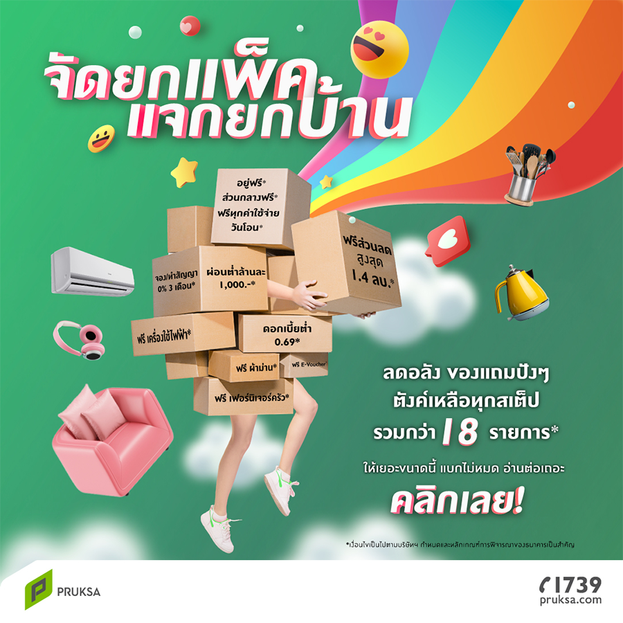 สอบถามรายละเอียดเพิ่มเติมได้ที่ โทร. 1739 เว็บไซต์ www.pruksa.com