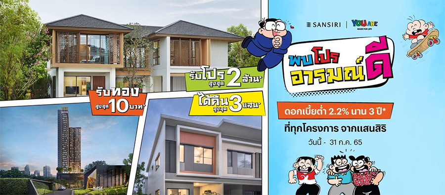 "แสนสิริ" จับมือ "ขายหัวเราะ" จัดโปรโมชั่น "โปรอารมณ์ดี" ที่จะทำให้คุณอารมณ์ดีม้าก..ม้ากกก ขนคอนโดฯ-บ้านเดี่ยว-ทาวน์โฮม 66 โครงการ จัดข้อเสนอสุดพิเศษเขย่าวงการอสังหาฯ ได้ทั้งเงิน ได้ทั้งทอง รับรองอารมณ์ดีแน่นอนตั้งแต่วันนี้ - 31 ก.ค.65