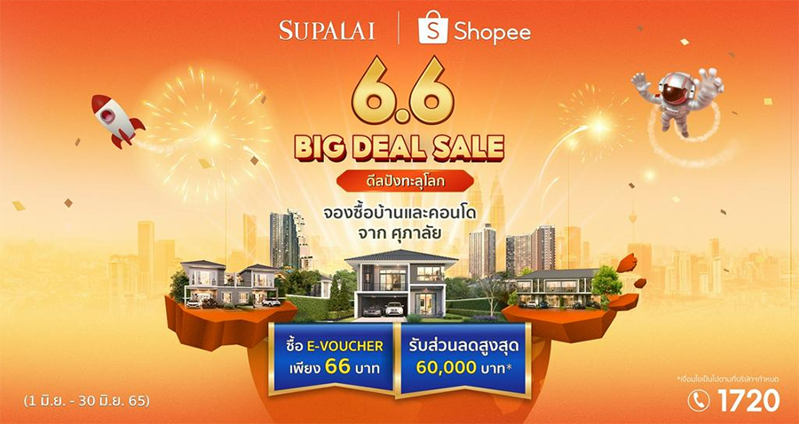 SUPALAI X SHOPEE 6.6 Big Deal Sale ดีลปังทะลุโลก ซื้อ E-Voucher เพียง 66 บาท รับส่วนลดสูงสุด 60,000 บาท