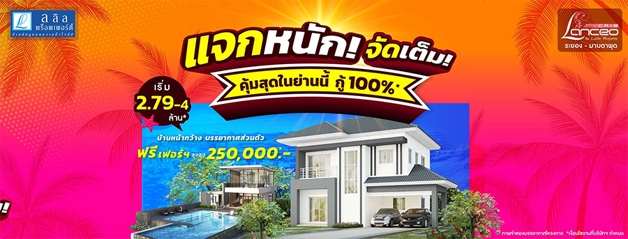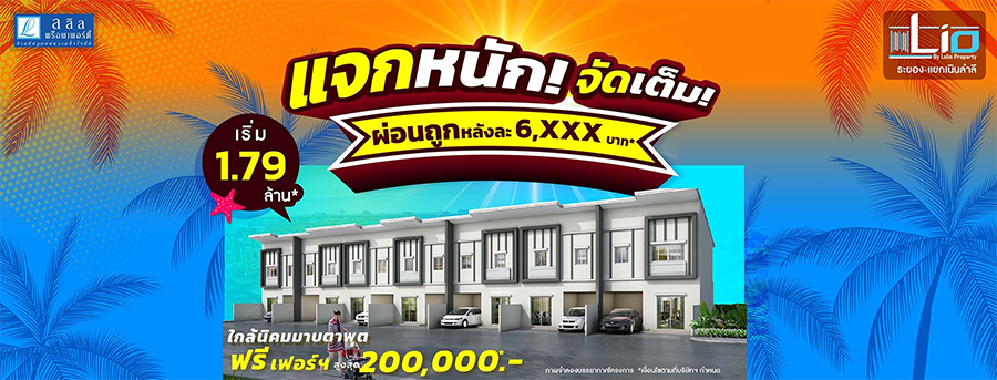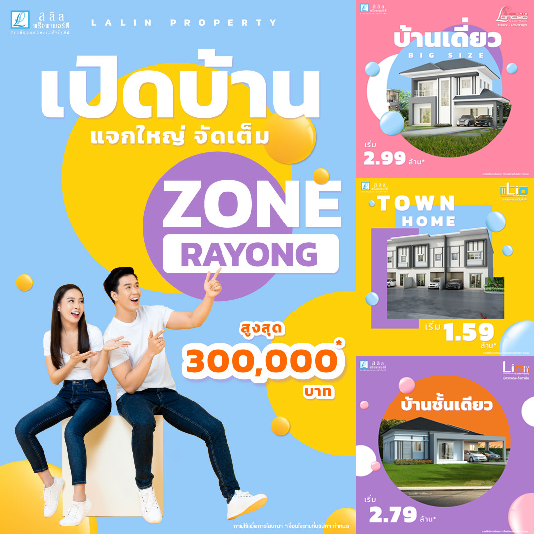 ลลิล พร็อพเพอร์ตี้ "เปิดบ้านแจกใหญ่จัดเต็ม Zone Rayong" แจกโปรทุกแปลง สูงสุด 300,000* ฟรี เฟอร์ แอร์ พร้อมของแถมเต็มหลัง ดาวน์ 0 บาท กู้เต็ม 100% แจกโปร ทุกแปลง สูงสุด 300,000* ฟรี!! เฟอร์+แอร์ พร้อมของแถม เต็มหลัง กับโครงการบ้านพร้อมอยู่