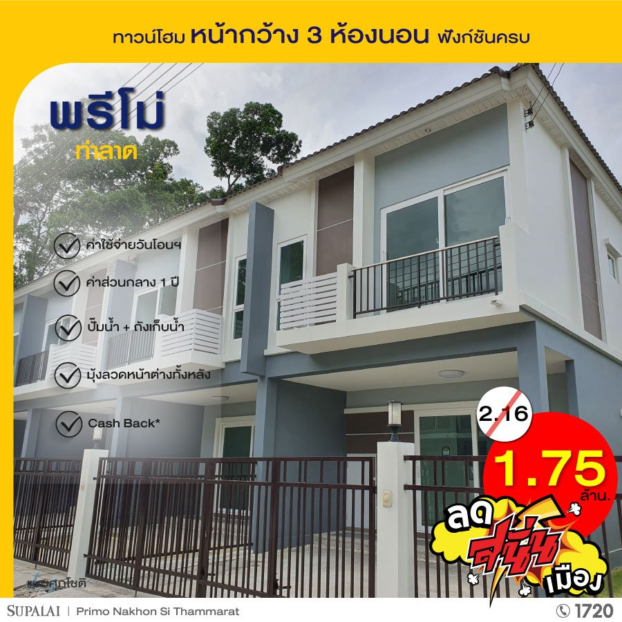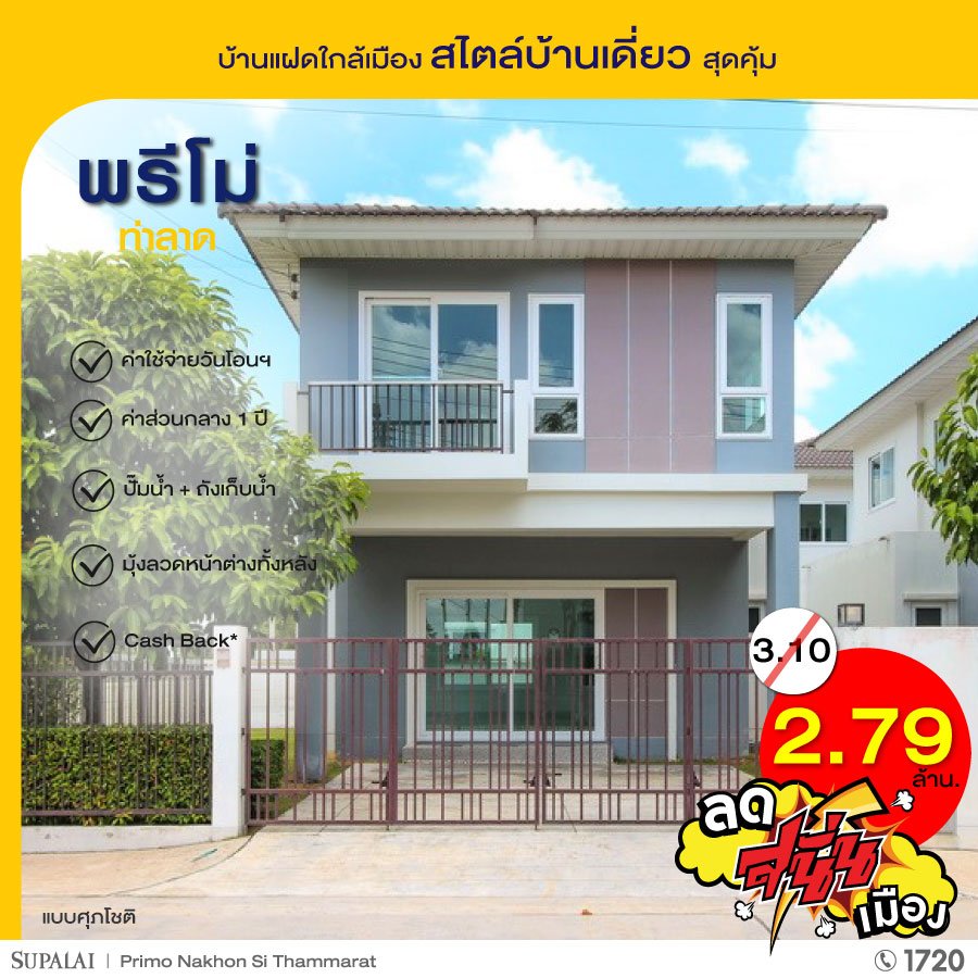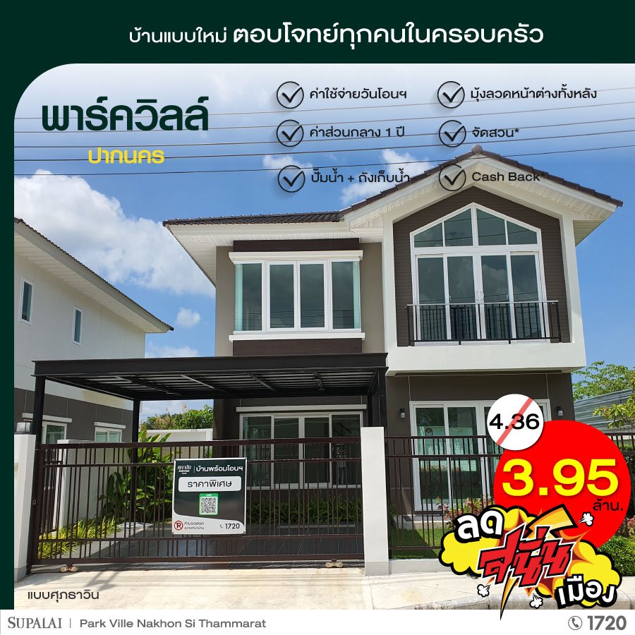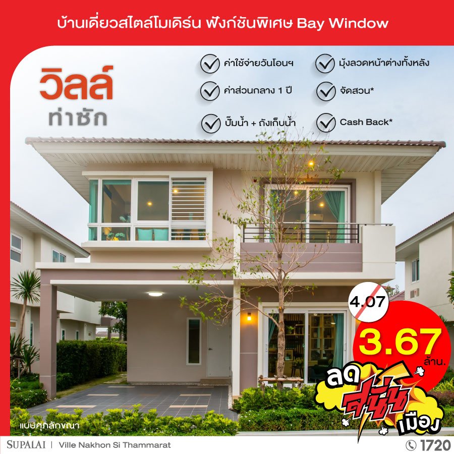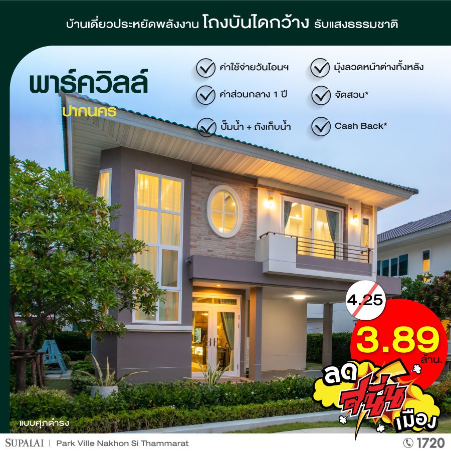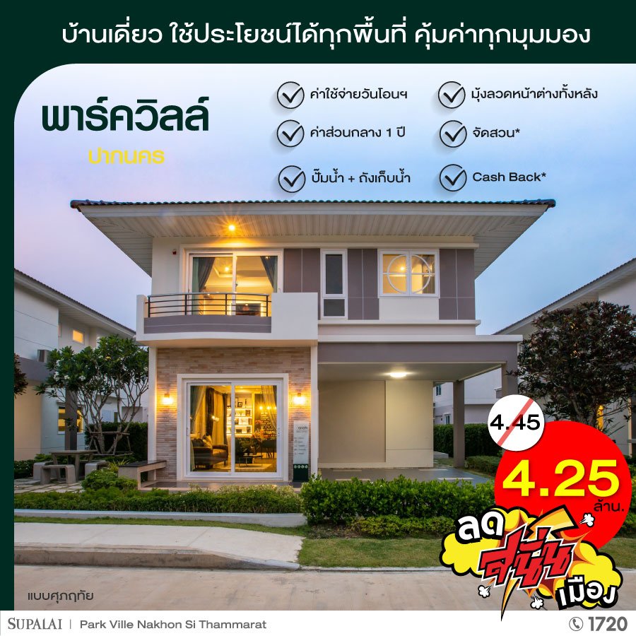 บริษัท ศุภาลัย จำกัด (มหาชน) จัดโปรโมชั่น "ลด สนั่น เมือง" แบบปังๆ ศุภาลัย นครศรีธรรมราช ยกขบวนบ้าน 5 โครงการ 5 ทำเล มาทุบราคา พร้อมโปรฯ สุดว้าวเเห่งปี ตั้งเเต่วันนี้ - 30 มิ.ย. 65 นี้เท่านั้น!