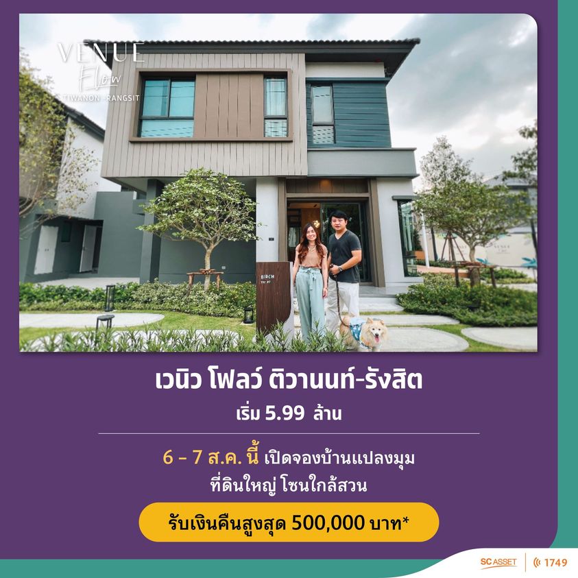 6-7 สิงหาคม 2565 นี้ "Venuw Flow ติวานนท์-รังสิต" เปิดจองบ้านแปลงมุม ที่ดินใหญ่ พื้นที่กว้างกว่า ก็ทำอะไรได้มากกว่า รับเงินคืนสูงสุด ???,??? บาท* เริ่ม 5.99 ล้าน คลิก https://m.scasset.com/9WE9