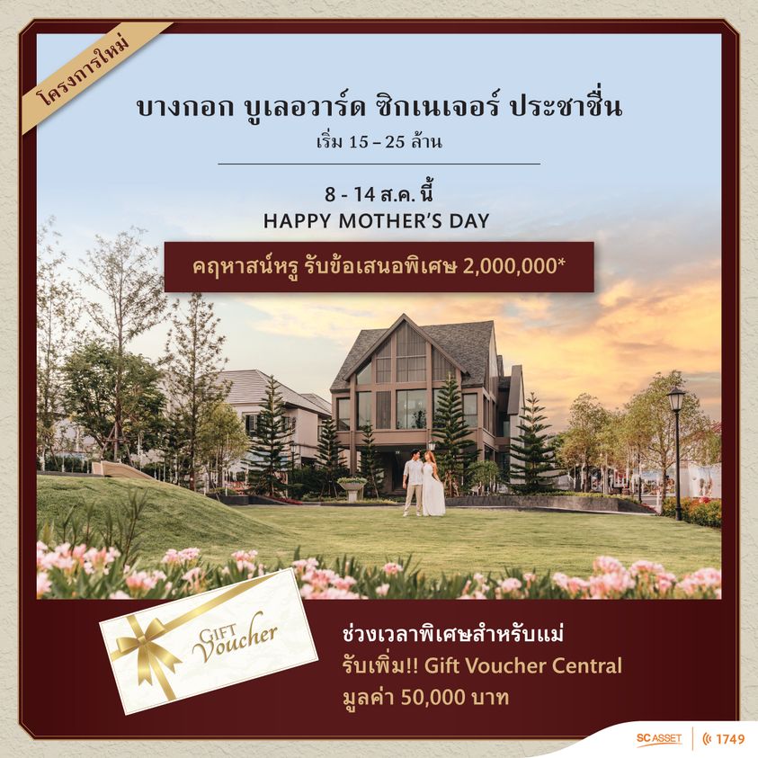 8 - 14 สิงหาคม 2565 นี้ Happy Mother's Day "บางกอก บูเลอวาร์ด ซิกเนเจอร์ ประชาชื่น" ช่วงเวลาพิเศษสำหรับแม่ รับเพิ่ม Gift Voucher Central 50,000* บาท ลงทะเบียนรับข้อเสนอพิเศษ : https://m.scasset.com/9AsH รับ 2,000,000 บาท* เริ่ม 15 - 25 ล้าน