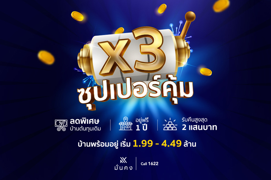ยกขบวนโปรแรง "x3 ซุปเปอร์คุ้ม" ?คุ้ม 1..ลดพิเศษบ้านต้นทุนเดิม ?คุ้ม 2..อยู่ฟรี 1 ปี ?คุ้ม 3..รับคืนสูงสุด 200,000 บ. ?พร้อม ????????? จัดเต็มทุกโครงการ . พบกันที่ Sales Gallery ทุกโครงการ บ้านเดี่ยว บ้านแฝด และ ทาวน์โฮม พร้อมอยู่ เริ่ม 1.99 - 4.49 ล้านบาท โปรโมชั่นเริ่ม 1 สิงหาคม - 30 กันยายน 2565