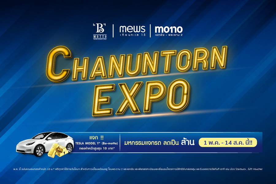 "Chanuntorn Expo" ชนันธรฯ แจกรถ TESLA MODEL Y มูลค่า 3.XX ล้านบาท* ทองคำหนัก สูงสุด 10 บาท* ฟรีทุกค่าใช้จ่ายวันโอนฯ* iPhone 13* และเพียงลงทะเบียนและเยี่ยมชมโครงการ มีสิทธิ์จับกล่องสุ่ม รับของรางวัล อาทิ บัตร Starbucks มูลค่า ??? บาท, Central Voucher มูลค่า 500 บาท สำหรับทาวน์โฮมพร้อมอยู่ โซนพระราม 2 - บางขุนเทียน และเอกชัย - บางบอน วันนี้ - 14 สิงหาคม 2565 และยังได้รับสิทธิพิเศษเพิ่ม ดังนี้