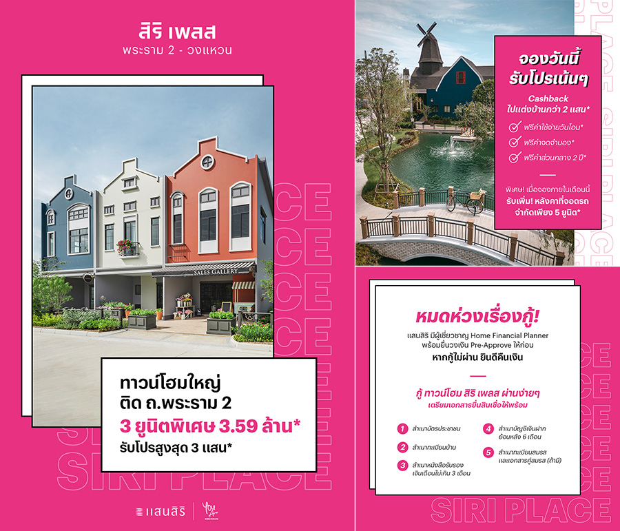 สอบถามรายละเอียดเพิ่มเติมได้ที่ โทร. 1685 เว็บไซต์ https://www.sansiri.com/