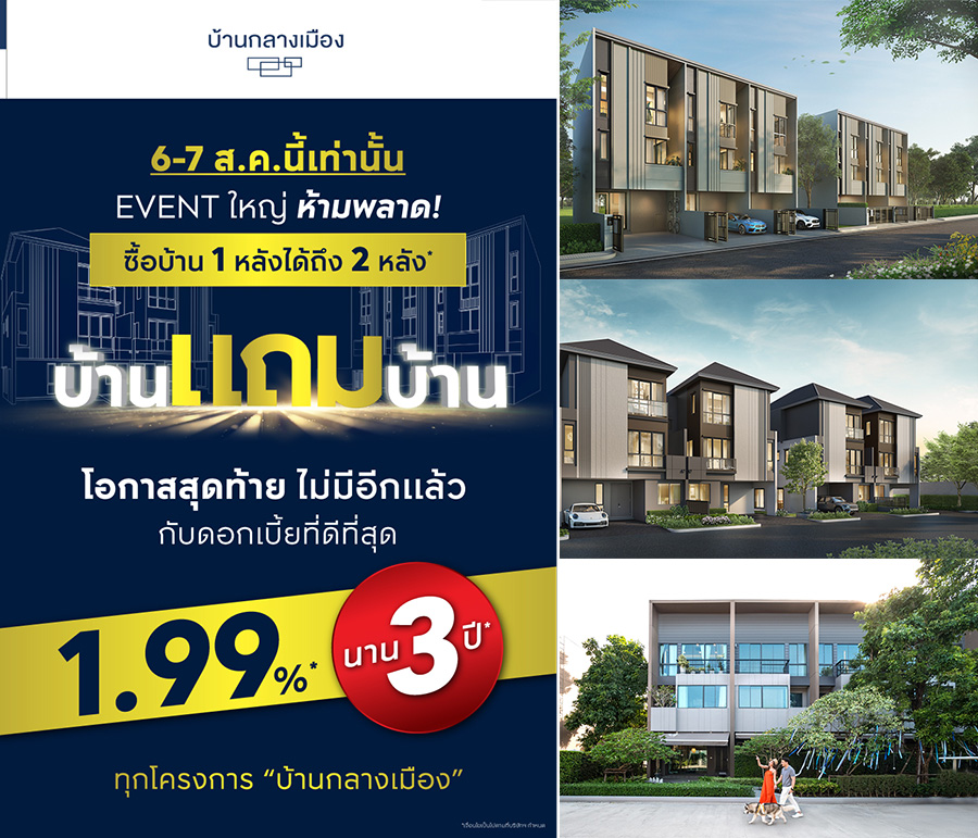 6-7 สิงหาคม 2565 นี้เท่านั้น! EVENT ใหญ่ ห้ามพลาด บ้านกลางเมือง “บ้านแถมบ้าน*” กลับมาอีกครั้งกับข้อเสนอพิเศษสุดในรอบปี "ซื้อ 1 หลังได้ถึง 2 หลัง*" โอกาสสุดท้าย ไม่มีอีกแล้ว กับดอกเบี้ยแห่งปี 1.99% นาน 3 ปี* ทุกโครงการ บ้านกลางเมือง และ THE EDITION ทั่วกรุงเทพฯ ซื้อบ้านตอนนี้ดีที่สุด ก่อนดอกเบี้ยจะขึ้น! . เริ่ม 3.89 - 12 ล้านบาท* คลิกดูโครงการและรายละเอียดเพิ่มเติม ? https://bit.ly/3ovV8p9