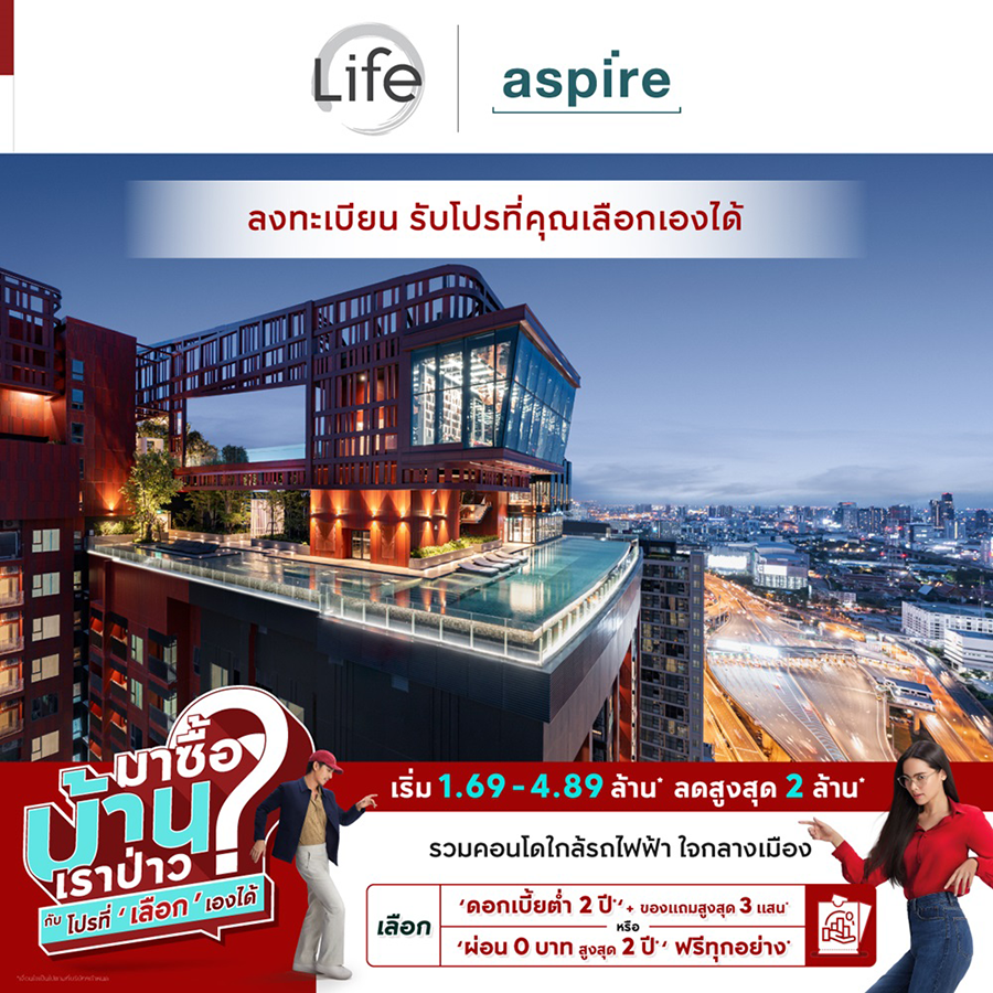 โอกาสเดียวกับการเป็นเจ้าของคอนโดใหม่ ใกล้รถไฟฟ้าใจกลางเมืองกับแบรนด์ไลฟ์ และแอสปาย เลือก! รับดอกเบี้ยต่ำคงที่นาน 2 ปี พร้อมของแถมมูลค่าสูงสุด 300,000 บาท หรือเลือกผ่อน 0 บาท นานสูงสุด 2 ปี พร้อมฟรีทุกอย่าง