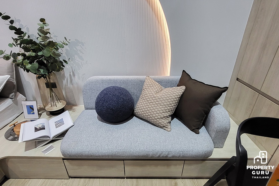 ภายในบูธยังมีให้ชมห้องตัวอย่างของโครงการ แบบ Studio ขนาดเท่าห้องจริง พร้อมตกแต่งแบบ Fully-Firnished ราคาเริ่มต้นที่ 3.49 ล้านบาท