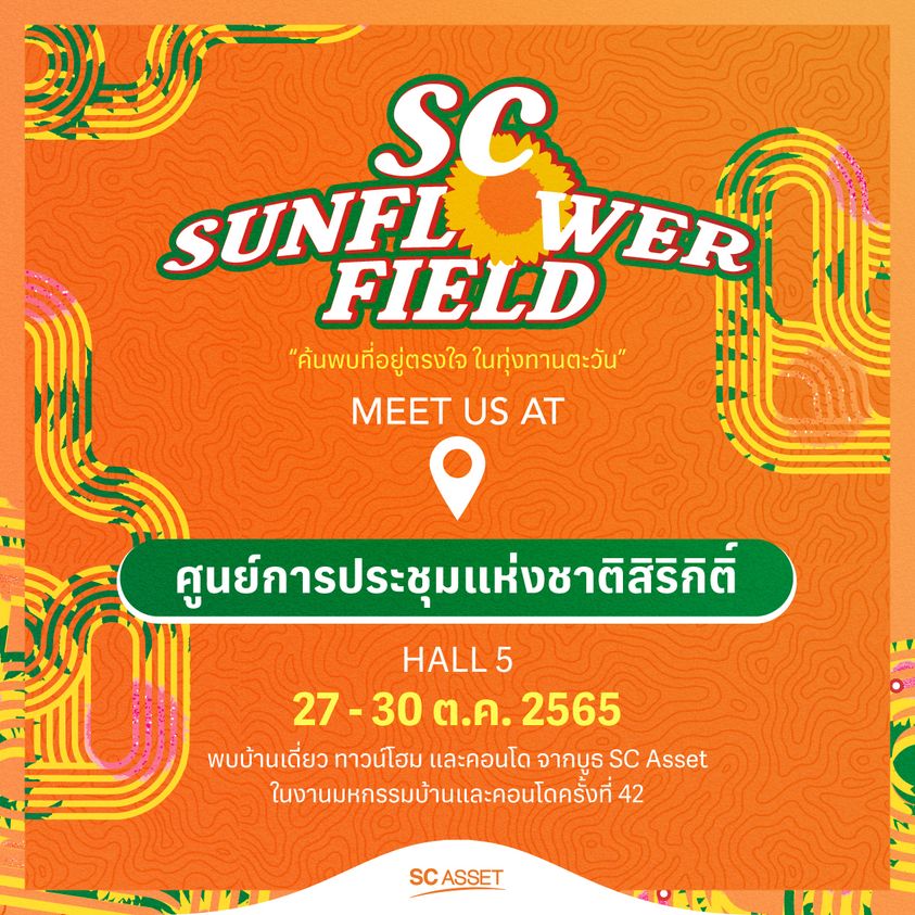 พบกับโปรโมชั่นสุดพิเศษจาก SC Asset ส่งท้ายปีกว่า 5,000,000 บาท* กับโครงการ บ้านเดี่ยว ทาวน์โฮม และคอนโดในหลากหลายทำเลคุณภาพกว่า 40 โครงการ อาทิ Bangkok Boulevard, Venue ID, Venue, V-Compound, Workplace, Pave, Verve, Reference, The Crest, Centric ได้ที่บูธ 12-22 และบูธ 39-49 พร้อมโชว์สุดพิเศษ! กับกิจกรรมสุด Exclusive ให้ร่วมสนุกและลุ้นของรางวัลมากมาย