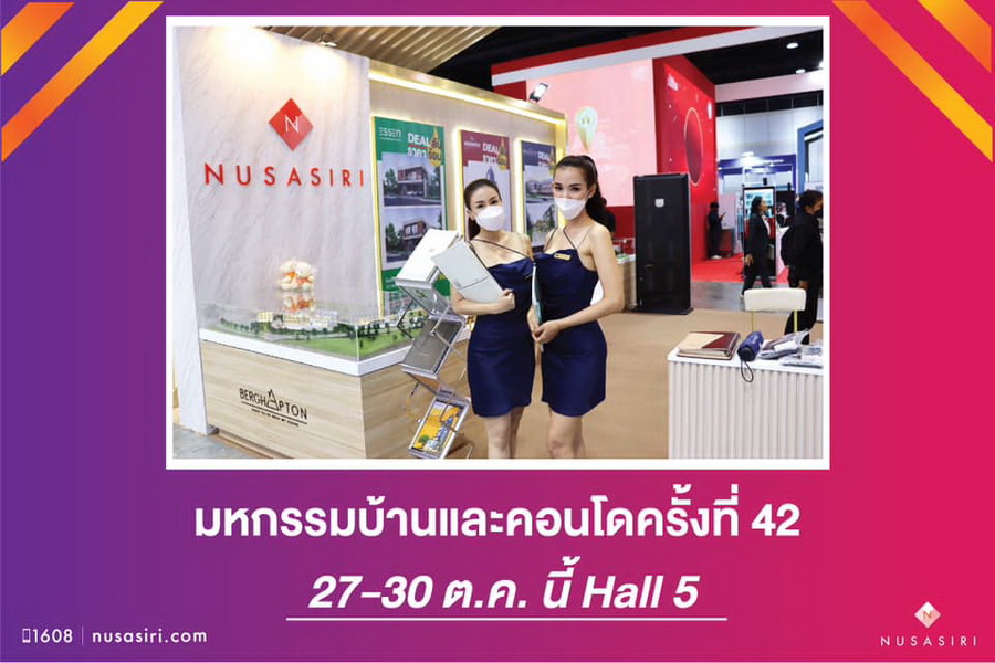 NUSASIRI จัดใหญ่ จัดเต็ม กับโปรโมชั่นสุดพิเศษ มีเฉพาะในงาน มหกรรมบ้าน และ คอนโด ครั้งที่ 42 นี้เท่านั้น ณ ศูนย์การประชุมแห่งชาติสิริกิติ์ Hall 5 :135 - 136 และ 165 - 166 ยกทัพมาให้ช้อปทุกโครงการ ทั้งโครงการอยู่อาศัยทำเลดี และโครงการเพื่อการลงทุนผลตอบแทนดี๊ดี จองในงานรับส่วนลดพิเศษสุดๆ โปรโมชั่น ของแถมอีกมากมาย และที่พักโรงแรมหรู โอกาสเดียวเท่านั้น