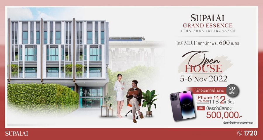 เชิญชวนร่วมงาน OpenHouse วันที่ 5-6 พ.ย. นี้ ที่ ศุภาลัย แกรนด์ เอสเซ้นส์ @ท่าพระ-อินเตอร์เชนจ์ เริ่ม 19.9 – 37 ล้านบาท* สิทธิเหนือระดับ เมื่อจองในวันงาน Open House 5-6 พ.ย. 65 เท่านั้น