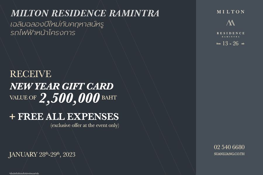New Year ปีนี้ รีบคว้าให้ไว กับโปรใหม่จากแสนสิริ ที่ให้คุณ Happy มีแต่ได้กับได้ ในราคาพิเศษสุดๆ* ที่บ้าน คอนโด และทาวน์โฮมพร้อมอยู่ วันนี้ - 31 ม.ค. 2566