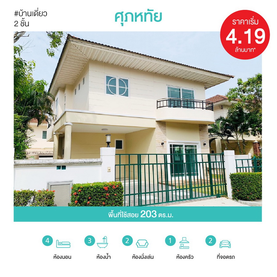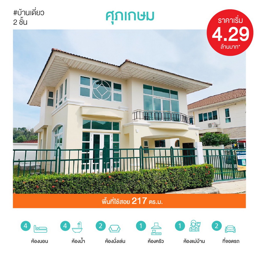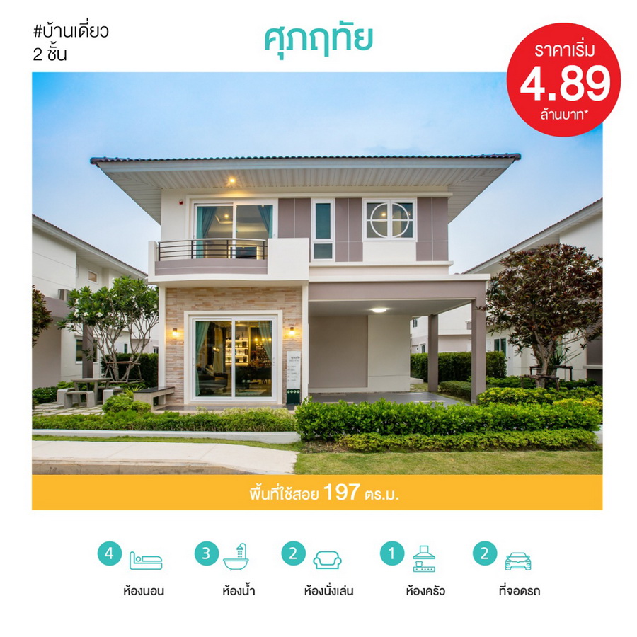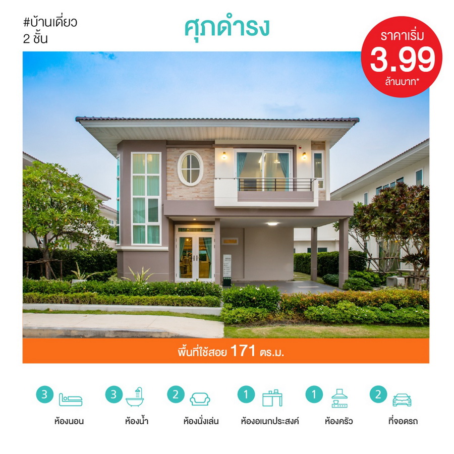 สัมผัสปาร์ตี้สุดฟินพร้อมขนมและเครื่องดื่มตลอดงาน ชวนลูกค้าเข้าชมโครงการและบ้านตัวอย่างที่เลือกสรรมาเพื่อครอบครัวที่สมบูรณ์แบบเหนือระดับ ทั้งบ้านเดี่ยวชั้นเดียวและบ้านเดี่ยว 2 ชั้น พื้นที่ใช้สอย 125 - 233 ตารางเมตร เริ่มเพียง 2.89 ล้านบาท* มาพร้อมการออกแบบบ้านที่ลงตัวและประหยัดพลังงาน เติมเต็มด้วยสิ่งอำนวยความสะดวกภายในโครงการ ทั้งสวนส่วนกลางถึง 2 แห่งในโครงการ ลานออกกำลังกาย ฟิตเนส และสระว่ายน้ำ