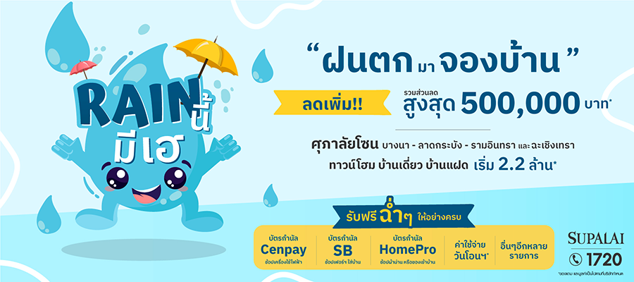 ? ฝนตกมาจองบ้านรับส่วนลดฉ่ำๆ สูงสุด 500,000 บาท กับ ศุภาลัย Rainนี้..มีเฮ ?