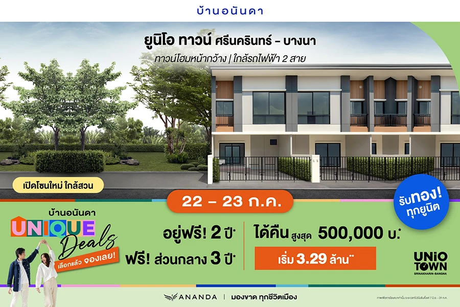 ? 22-23 ก.ค. นี้ เลือกแล้วจองเลย ! จองเริ่มเพียง 5,000 บาท* พร้อมรับข้อเสนอพิเศษเพื่อคนเมือง UNIQUE DEALS