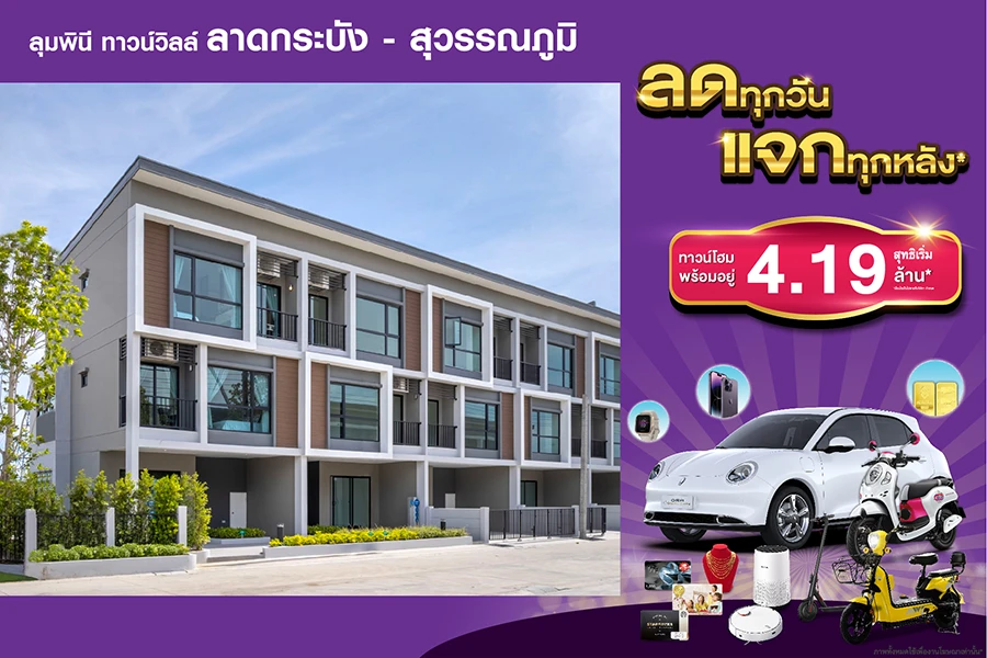 ห้ามพลาดกับโอกาสดีๆสำหรับคนอยากมีบ้านในแคมเปญ ‘ลดทุกวัน แจกทุกหลัง’* พบกับ 8 โครงการบ้านแฝดและทาวน์โฮมคุณภาพที่มาพร้อมกับความน่าอยู่จาก LPN พร้อมราคาสุดพิเศษ และรับของแถมมากมายมูลค่ารวมกว่า 2 ล้านบาท* เมื่อโอนฯ ตั้งแต่วันนี้ - 30 ก.ย. 66 (*เงื่อนไขเป็นไปตามที่บริษัทฯ กำหนด) สำหรับผู้ที่สนใจสามารถเข้าชมโครงการได้ที่สำนักงานขายทั้ง 8 โครงการ ตั้งแต่เวลา 9.00 – 18.00 น. รายละเอียดเพิ่มเติมโทร LPN Call Center 02-689-6888 ช่องทางออนไลน์ www.baanlumpini.com / Facebook: Baan Lumpini l บ้านลุมพินี