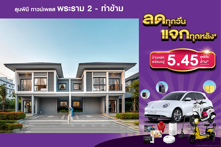 1.โครงการลุมพินี ทาวน์เพลส พระราม 2 – ท่าข้าม บ้านแฝดติดถนนใหญ่ท่าข้าม สุทธิเริ่ม 5.45 ล.บ.*
