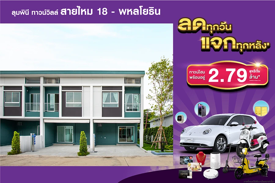 4.โครงการลุมพินี ทาวน์วิลล์ สายไหม 18 – พหลโยธิน ทาวน์โฮมติดถนนใหญ่สายไหม สุทธิเริ่ม 2.79 ล้าน* ลงทะเบียนรับราคาพิเศษ https://bit.ly/3DT0DTJ