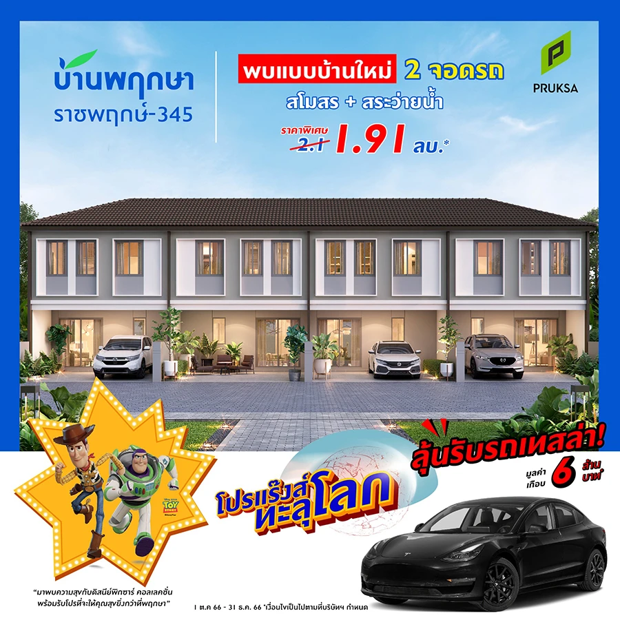 สอบถามรายละเอียดเพิ่มเติมได้ที่ โทร. 1739 เว็บไซต์ https://www.pruksa.com/