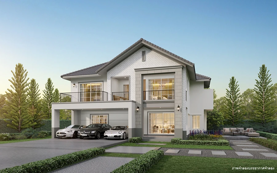 1. LILLIAN (ลิเลียน) พื้นที่ใช้สอยประมาณ 171 ตร.ม.* ฟังก์ชั่น 4 ห้องนอน 3 ห้องน้ำ 2 ที่จอดรถ