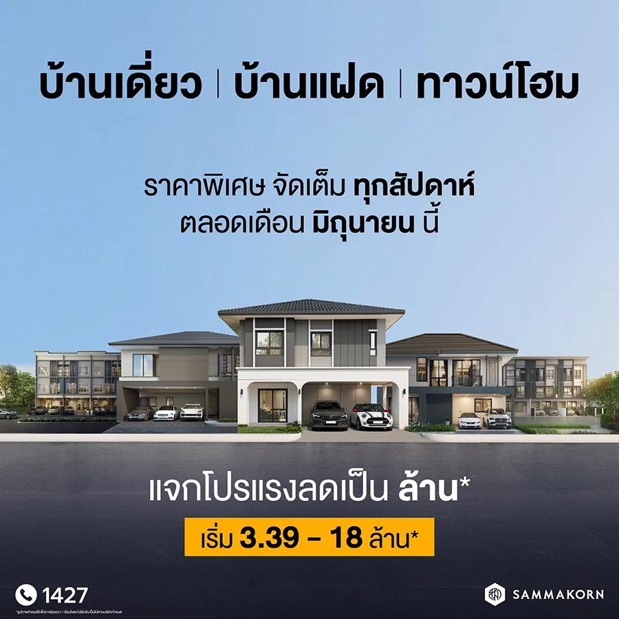 ตลอดเดือน มิถุนายนนี้ บ้านเดี่ยว บ้านแฝด ทาวน์โฮม