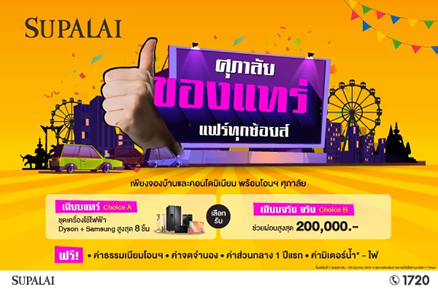 สอบถามรายละเอียดเพิ่มเติมได้ที่ โทร. 1720 เว็บไซต์ https://www.supalai.com