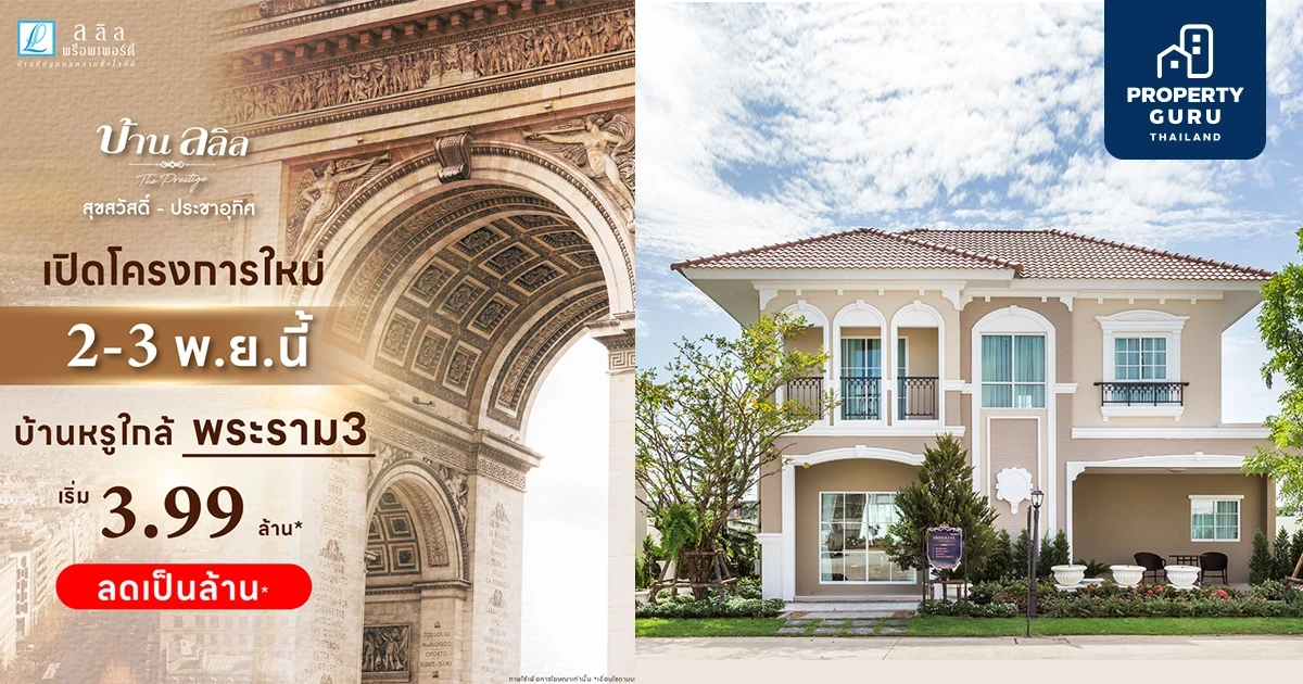 บริษัท ลลิล พร็อพเพอร์ตี้ จำกัด (มหาชน) หรือ (LALIN) เตรียมเปิดจองบ้านโครงการใหม่ บ้านลลิล เดอะ เพรสทีจ ประชาอุทิศ-สุขสวัสดิ์ บ้านเดี่ยวหรู สไตล์ฝรั่งเศส วันที่ 2-3 พ.ย.นี้ ลดเป็นล้าน กับบ้านหรูใกล้พระราม 3 ราคาเริ่มต้น 3.99 ล้าน*