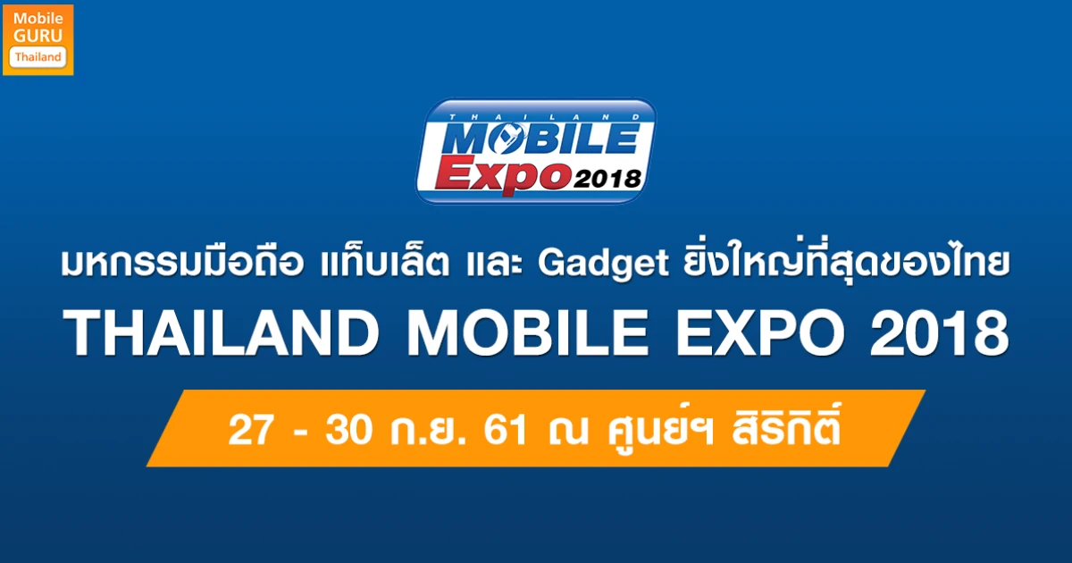Thailand Mobile EXPO 2018 มหกรรมมือถือ สมาร์ทโฟน แท็บเล็ต และ Gadget วันที่ 27 - 30 ก.ย. 61