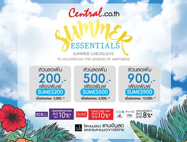ตัวอย่างโปรโมชั่นเว็บไซต์ช้อปปิ้งออนไลน์ของ www.central.co.th ที่มีโปรโมชั่นหลากหลาย