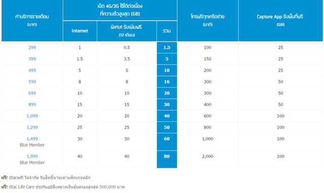 1. 4G ไอสมาร์ท จะเน้นในเรื่องการโทรอย่างคุ้มค่า และเล่นเน็ตสุดแรง โดยมีค่าบริการให้เลือกตั้งแต่ 299 บาท จนถึง 1,899 บาท ใช้เน็ตได้สูงสุด 20GB