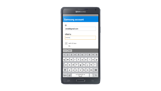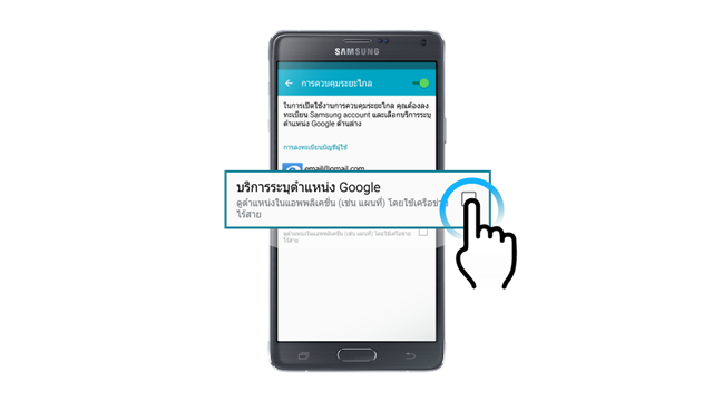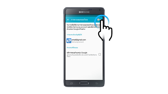 - จากนั้นใส่ Samsung account และรหัสผ่านลงไป และเปิดใช้งานการควบคุมระยะไกล