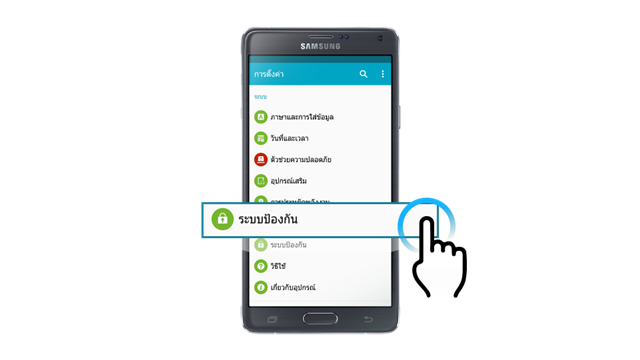 - อันดับแรกต้องเริ่มเข้าไปที่การตั้งค่า (settings) ก่อน แล้วเลือกเลือก ระบบป้องกัน (Security)
