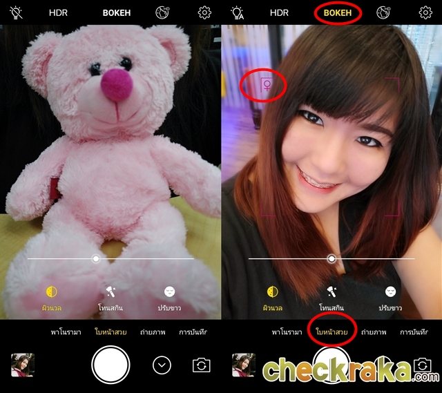 Vivo V5 Plus สามารถใช้งานโหมด Bokeh และ โหมดใบหน้าสวย และระบุเพศได้พร้อมกัน